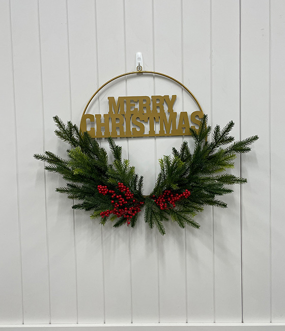 Gold Metal Merry Christmas Wreath with Berries – Christmas Wreath – 66 cm