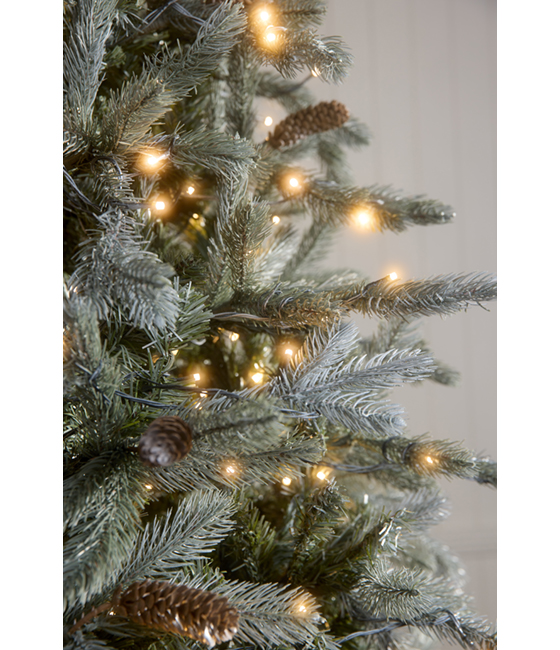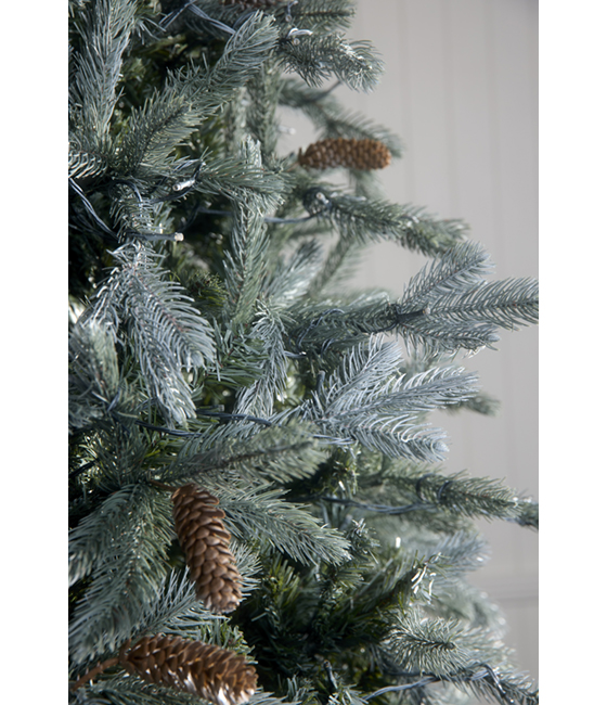 “The Blue Spruce with Pine Cones” Pre-Lit 9ft (2.7m) is a hinged artificial Christmas tree with 800 warm white LED lights already attached. It has a mixture of PVC and PE branches with dense foliage in varying shades from a blue-green to a silvery hue which combine to make a very elegant and special Christmas tree. Being pre-decorated with pine cones and hinged, this Christmas tree is great for customers who are looking for a simply stunning Christmas tree with very little assembly.